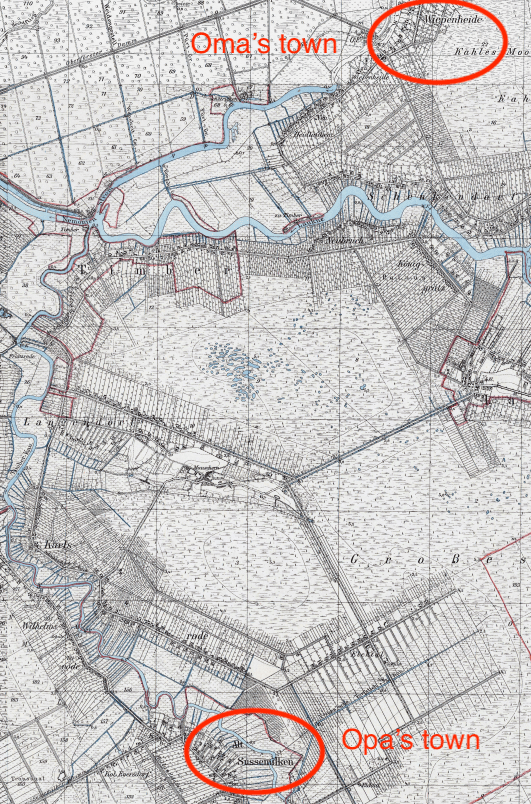 Another map of the time, showing how close Oma and Opa lived to one another.