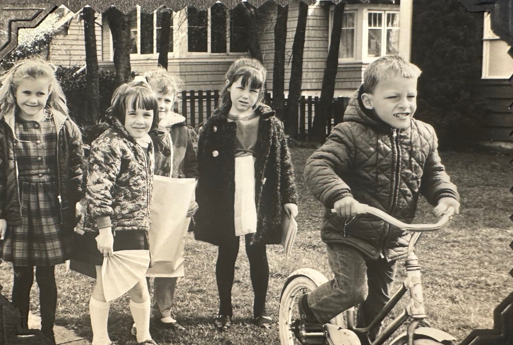 My first day of school was memorable. When the recess bell rang, everyone streamed outside. Naturally, I had no idea what was going on, but I followed the crowd – playtime outside! After ten minutes, the bell rang again, and it took me a while to realise everyone was going back in. The school had boys from grade seven that were deemed “recess monitors”, whose job it was to herd the lower grades back into the school; the monitor began shouting “who’s gonna be last so I can pound ’em?”. I was terrified, and ran home. My mother had decided that morning to go shopping on Lonsdale, so wasn’t home, which only made me even more upset. I went to the upstairs duplex, rang the bell, and simply cried until my mother came home from shopping.