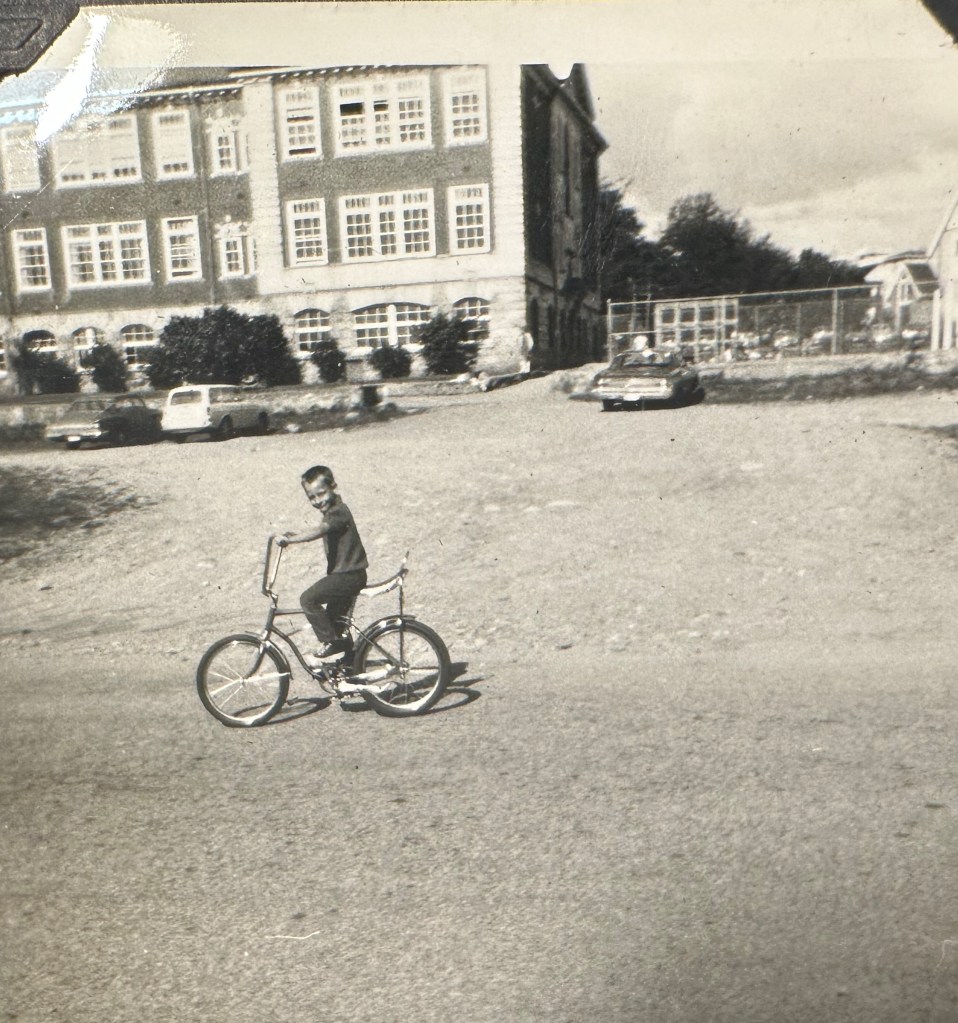 I did get a very cool bike for my eighth birthday: a blue Mustang with monkey-bar handles and a sparkly banana seat. Although we were a single-income family, with my father working as a meat-packer, I never felt deprived of material possessions – the bicycle was as good as any kid’s bike in the neighborhood.