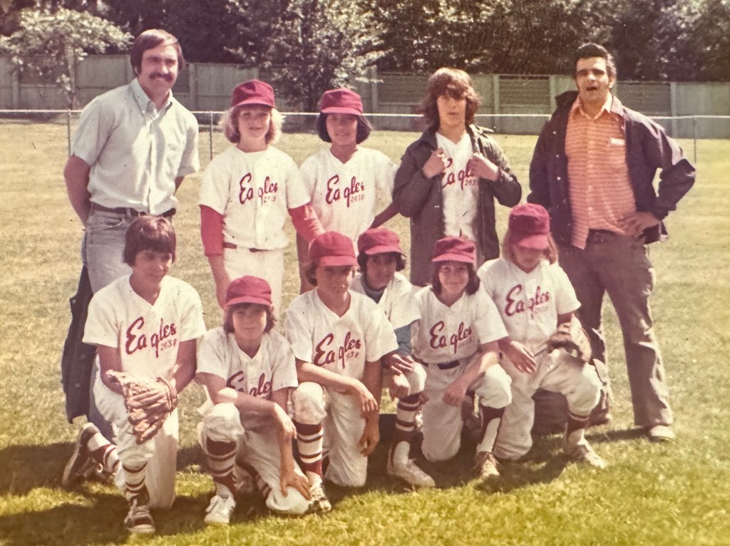 I was a better baseball player than soccer player. When I tried out for baseball at age 9, I was selected to play in the upper division (the Majors) rather than the lower (the Minors). I remember hearing a story about the draft at that time (coaches watched the tryouts, then met to select players. The best team at the time was coached by someone who actually had played semi-professional baseball: Dave Empy. He selected me, but then the organiser realised that a mistake was made, and it was another team’s selection instead; the manager of the Eagles, Ernie, had no notes on me, but decided to select me simply because Dave Empy wanted me.