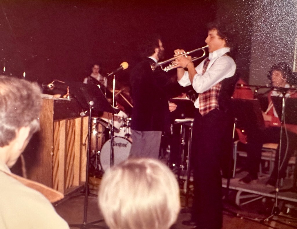 In grade nine, I joined the North Vancouver Youth Band, and took up trumpet and quickly moved up from the Junior band (made up of kids five years younger than me) to the Intermediate band (made up of kids three years younger than me). By grade 10, I was in the Senior band, and we made a trip to the Calgary Stampede in 1978, and to England in 1979.