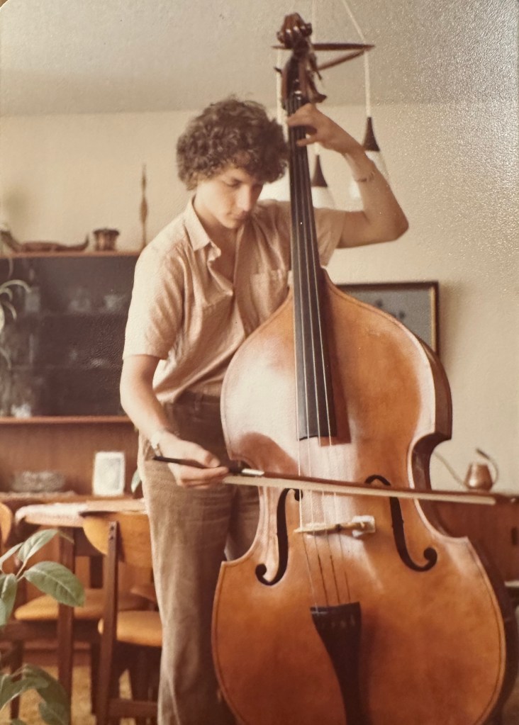 I had worked the summer after high school at London Drugs so that I could buy my own car. When I had enough money (about $1000) to purchase an older used car, Oma and Opa bought me a much nicer two-year old car for $3500, and told me to save my money. Using that saved money, and combining it with money I made playing gigs during first year college, I was able to buy a double bass.