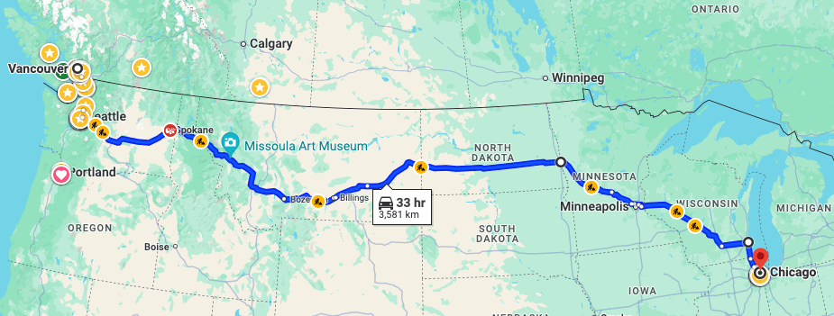 Your mother and I were married in May of 1990, and moved to Chicago in August of that year. We drove a small UHaul rental truck with our belongings; Oma and Opa drove with us as far as Seattle to see us off.