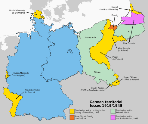 After their loss in the Great War, Germany was forced to become a republic. Much of Prussia was ceded to Poland.